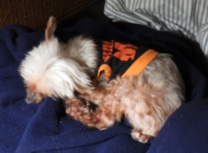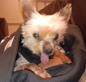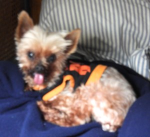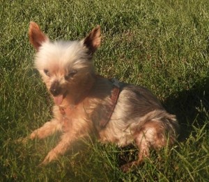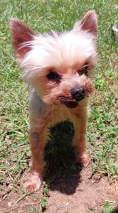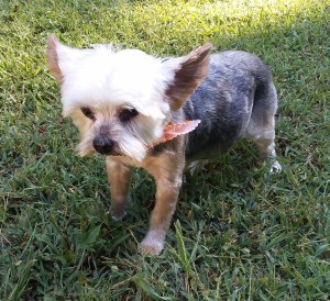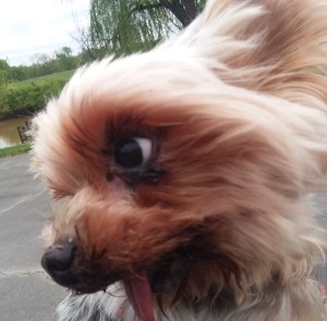 Rachell picks up Chester and they head to the front lawn. He does not hesitate to follow her as she heads toward the driveway. He trails her direction, sniffing around as they proceed wondering, “Where is Rachell taking me today?”